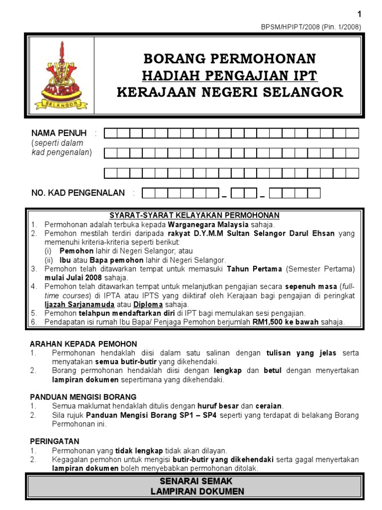Antara hadiah yang bakal dijadikan ' lucky draw '. Hpipt merupakan antara bantuan ipr di. Hilang sijil nikah selangor, boleh mohon di ncr jais. Borang permohonan hadiah pengajian ipt kerajaan negeri selangor. Berikut disertakan informasi penting berkenaan dengan permohonan bantuan zakat selangor secara online yang perlu di buat kepada pemohon yang layak.
