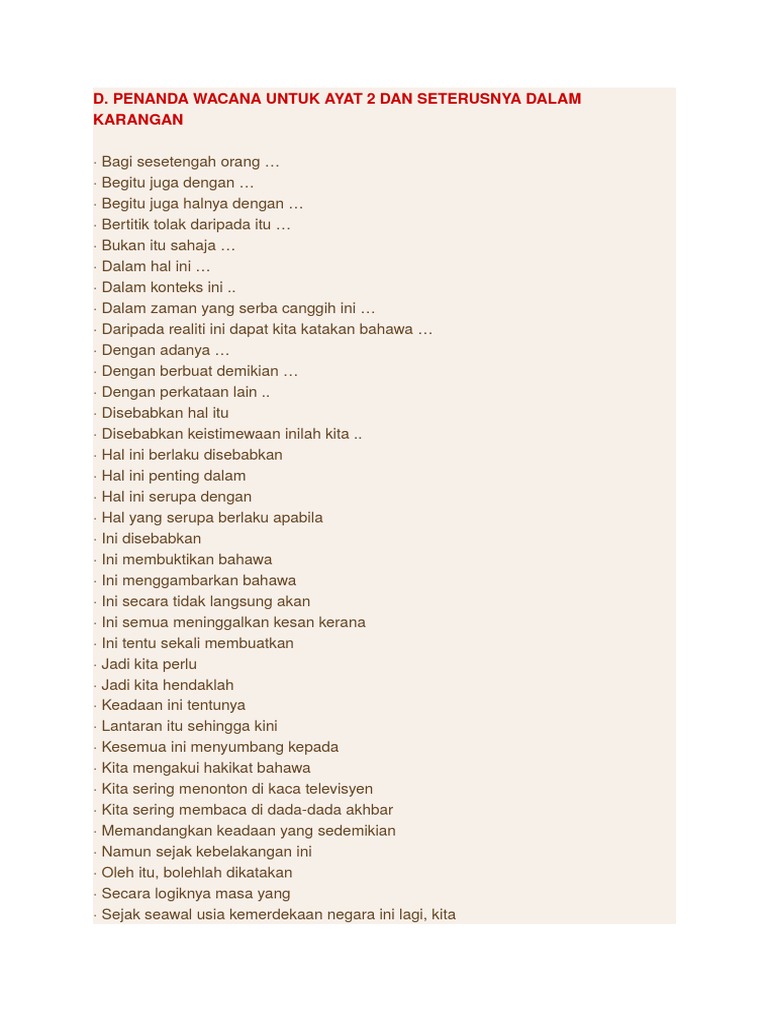 This page helps you translate english to spanish for free and offers professional spanish translation services. The role of teacher in society essay. Bantuan kerjarumah (tingkatan 5) : Savesave penanda wacana english for later. Contextual translation of penanda wacana into english.