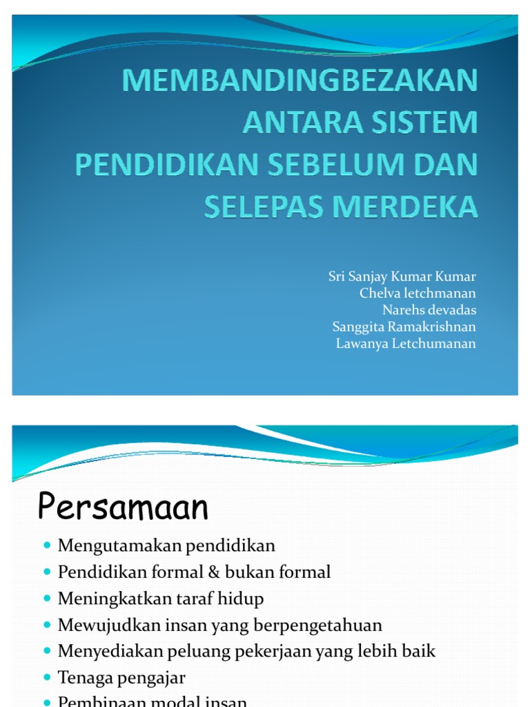 Memahami sistem pendidikan di sarawak selepas merdeka. Memenuhi keperluan negara yang merdeka dan mengembangkansistem pendidikan.3. Pada 31 ogos 1957, tepat jam dua belas tengah malam, malaya atau persekutuan tanah melayu diisytiharkan sebagai negara yang merdeka. Transcript of perbandingan sistem pendidikan sebelum dan selepas merdeka perbandingan sistem pendidikan sebelum dan selepas merdeka dedora daniel chryilmix tanis mohd. Pendidikan formal, pendidikan tidak formal.