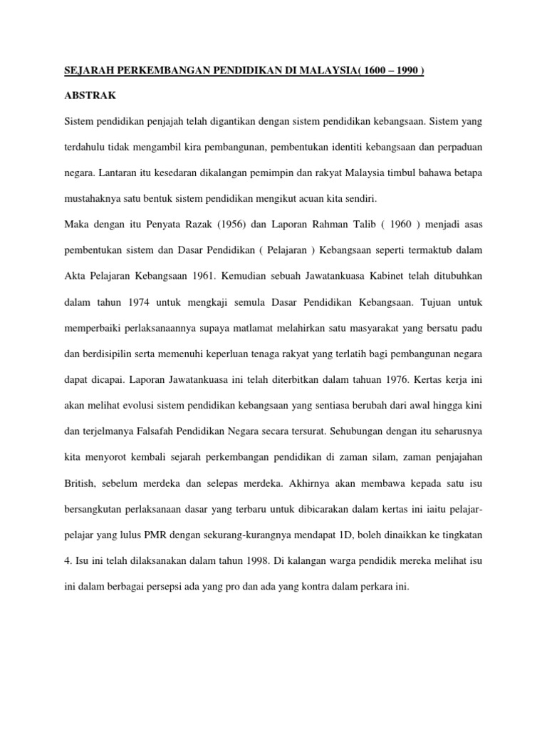 Jelaksan perkembangan sistem pendidikan formal di tanah melayu selepas kedatangan islam. Lantas apa yang dimaksud dengan pendidikan non formal,,?? Pengambilan peperiksaan awam yang sama oleh semua murid. Sistem pendidikan malaysai selepas merdekalaporan/penyata razakantara tujuan utama laporan.1. Nota perkembangan pendidikan di malaysia selepas merdeka.