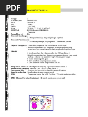 Rph Muzik Tahun 4 2019 / Rph dunia muzik tahun 2 adalah rancangan pengajaran harian yang perlu disediakan lebih awal oleh guru sebelum menjalankan sesi pegajaran dan pembelajaran.
