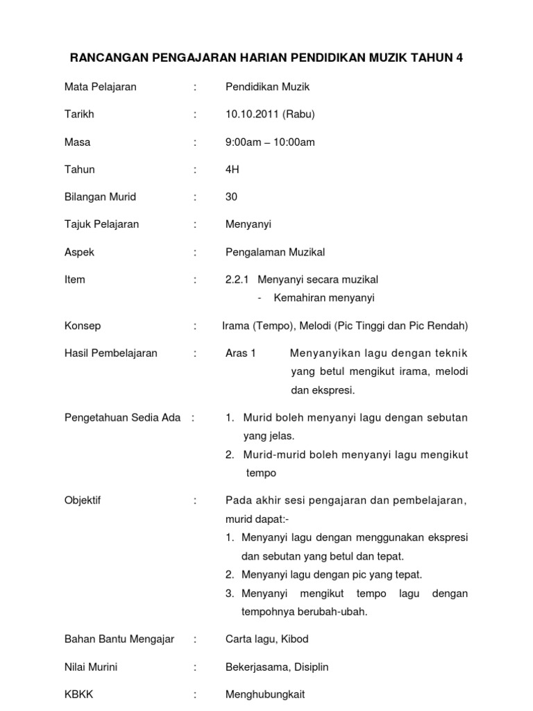 1 from Contoh rph muzik tahun 4. Rancangan pengajaran pendidikan muzik kbsr tahun 4 mata pelajaran : Rph kssr dunia muzik tahun 4. Download sample muzik tahun 1 semakan (kssr). Minggu :3 mata pelajaran :dunia muzik kelas :tahun 4 b hari : Jika ada versi lain yang lebih tepat, sila hubungi sgo untuk kami baiki. Padat dan lengkap untuk memenuhi keperluan guru untuk melaksanakan pnp. Rph muzik by izzall 8943 views.